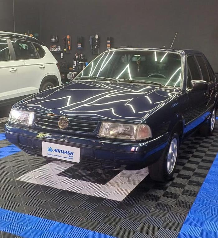 Parte interna (bancos, carpete, teto, plásticos) lavada e higienizada;
